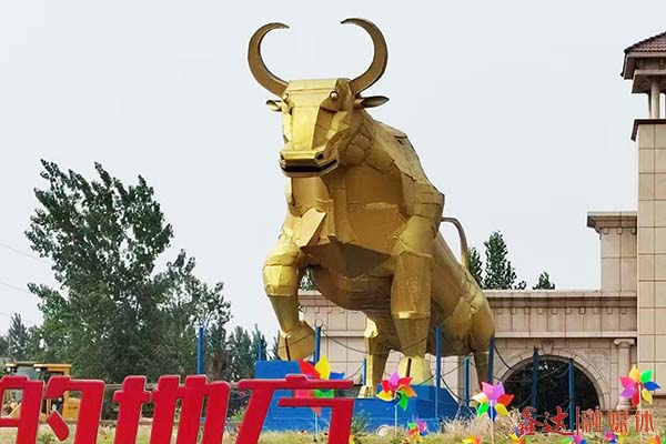 董學不僅是一個維修能手,更是一個心靈手巧的能工巧匠。在董學眼里,一塊舊鐵皮、一根廢鐵絲、一個壞齒輪,哪怕是一個小螺母都是“寶物”,都能蝶變成“藝術品”扮靚廠區。他利用工作間隙,帶領班組人員將一塊塊廢舊沒有棱角的鋼板,在車間細細打磨、精雕細琢和組裝,廢舊的鋼板搖身一變成了眼前的“奮斗牛”創意作品,通體呈金色,體態矯健,顯得剛勁有力。他用一雙巧手賦予了一塊塊冰冷的廢舊鋼板以靈魂和情感,在堅持中升華,化腐朽為神奇,于細微處彰顯卓越。董學說道,“奮斗牛”是一種自強不息、百折不撓的狀態,代表了鑫達人永不服輸,通過個人奮斗,成就多彩人生的豪情壯志。現在“奮斗牛”展示在廠區醒目位置,增強了員工的歸屬感。不僅如此,像涼亭、秋千、搖搖椅、花架等20個工藝模型全部出自董學之手。